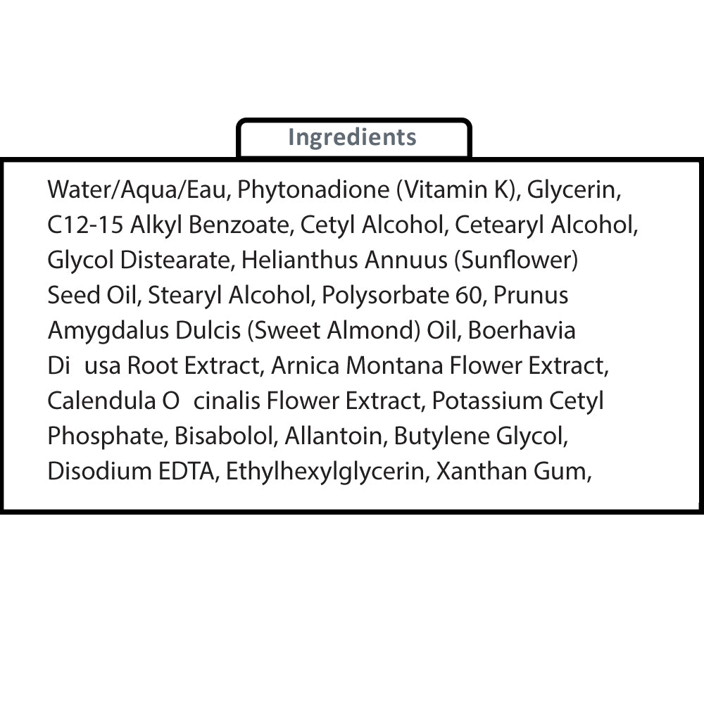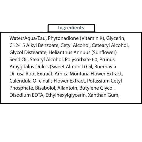 Fortified with Vitamin K 5%, Sunflower Oil and Sweet Almond Oil, this concentrated, restorative treatment helps reduce under-eye dark circles and puffyiness while also clearing bruising, spider veins, and broken capillaries. Soothing and hydrating properties help skin retain its natural moisture. Helps reduce the appearance of fine lines and wrinkles while calming emollients relieve redness and irritation often associated with rosacea. Formulated as a treatment regimen for fragile skin before or after in-office or surgical procedures.