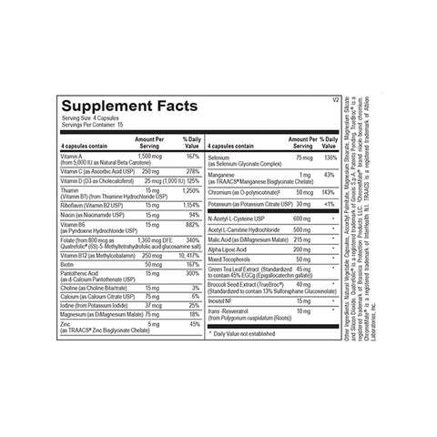 Multivitamin that supplies key mitochondrial micronutrients and a smart combination of alpha lipoic acid, N-acetyl cysteine, and acetyl L-carnitine to boost cellular energy production.